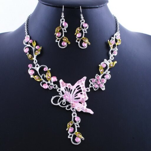 Material: Alloy Treatment process: diamond Style: women’s style Set combination: earrings + accessories Inlay material: alloy inlaid artificial gemstone / semi-precious stone Perimeter: 51cm (inclusive) – 80cm (inclusive) Extension chain: 10cm or less Pendant material: alloy Pattern: butterfly / dragonfly / insect Color: red, yellow, green, blue, purple, pink Product Size: Necklace 450+40mm Earrings 49mm…