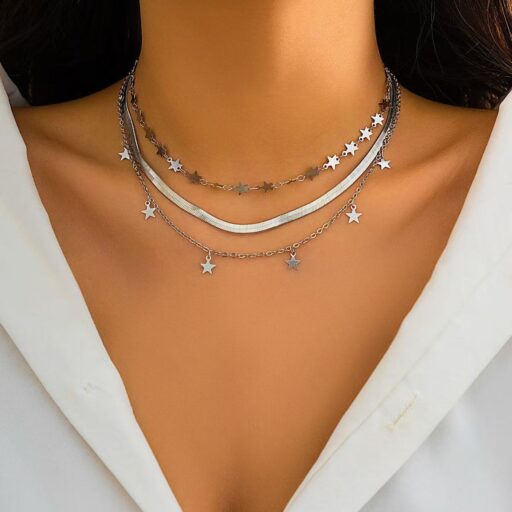 Product information: Processing Technique: Electroplating Colors: 01 Gold, 02 Gold, 02 White K Suitable Gender: Female Pendant Material: Alloy Material: Alloy Shape: U-Shape Trendy Element: Five-Pointed Star Style: European and American Style Packing list: Necklace 3pcs Set x1pc Product Image: