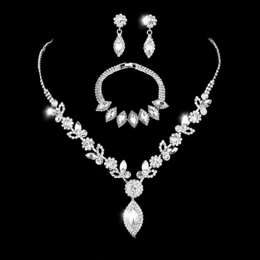 Product Information: Treatment process: electroplating Style: Female Colors: 754 Necklace Earrings Set,754 Necklace Earrings Bracelet,600 bracelet White,600 Bracelet Royal Blue,600 bracelet Red Material: Copper Size information: Packing list: 1 pair of earrings + necklace *1/1 pair of earrings + necklace + bracelet *1/ bracelet *1
