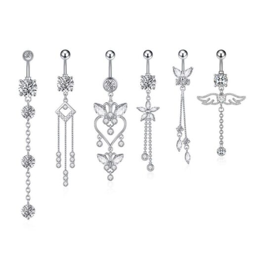 Product information: Type: umbilical cord ring Treatment Process: Electroplating Color: white gold 1173, pink diamond 1173, Cyan 1173, wine red Style: Unisex Material: Copper Shape: heart shape Style: Simple Packing list: Umbilical ring x1pc Product Image: