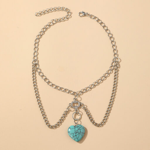 Product information: Style: Europe and America Material: Alloy Treatment process: electroplating Type: arm chain Style: Women’s Shape: heart shape Color: silver Packing list: Body Chain*1