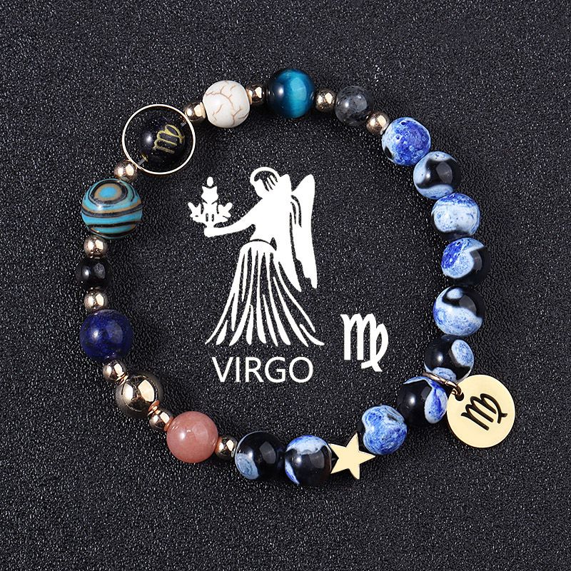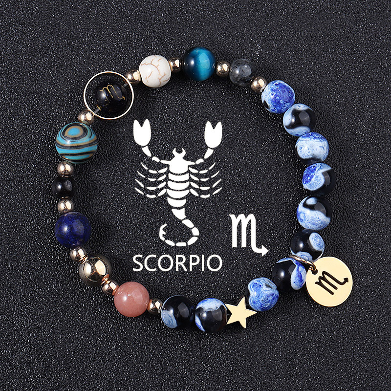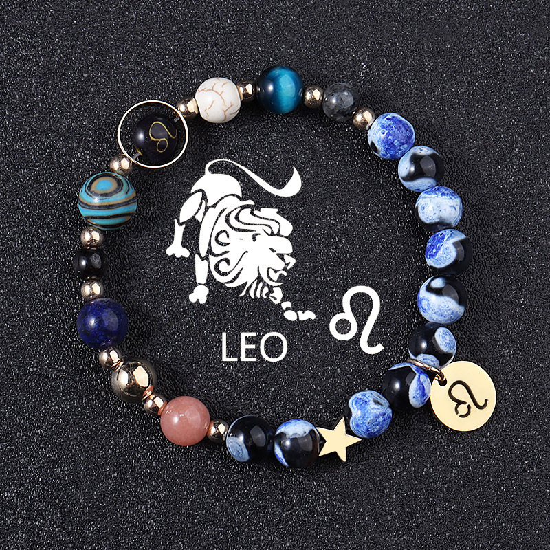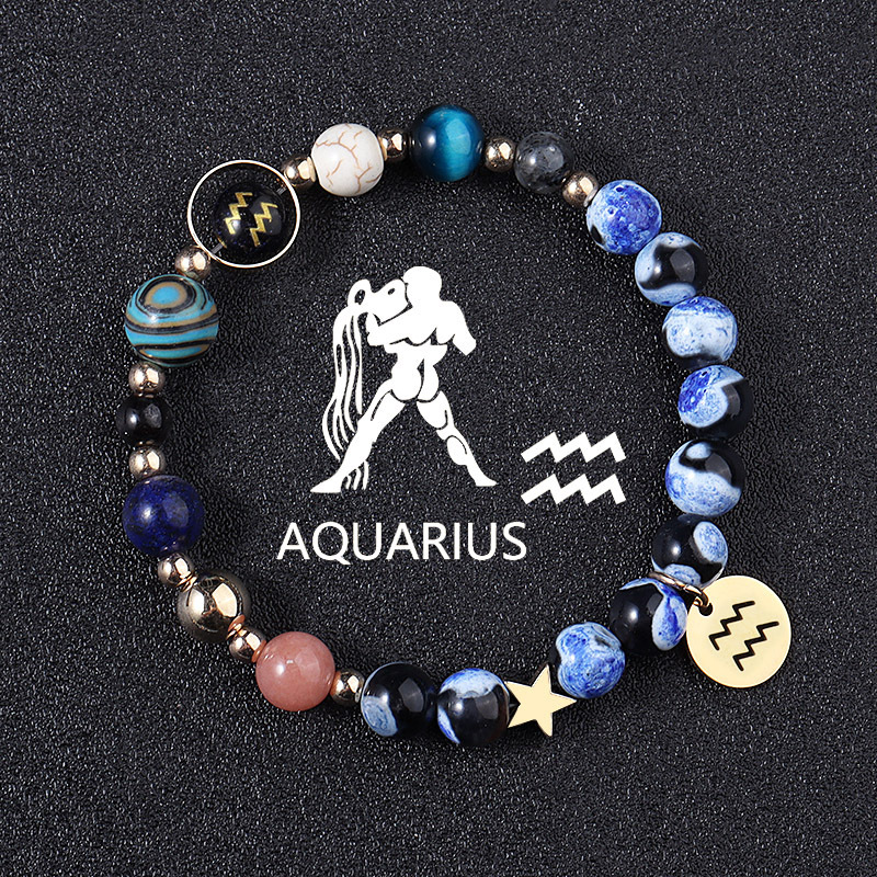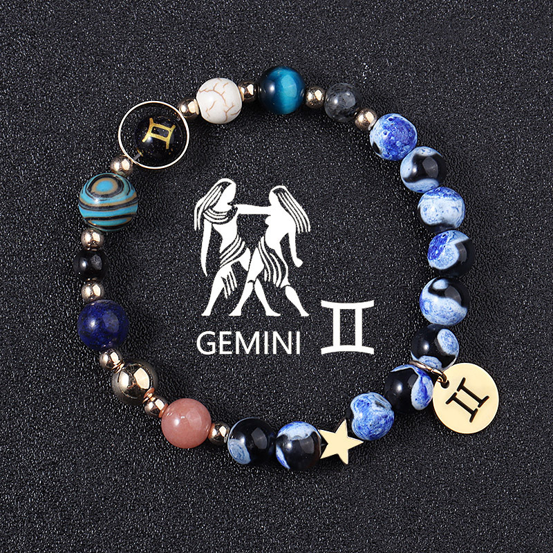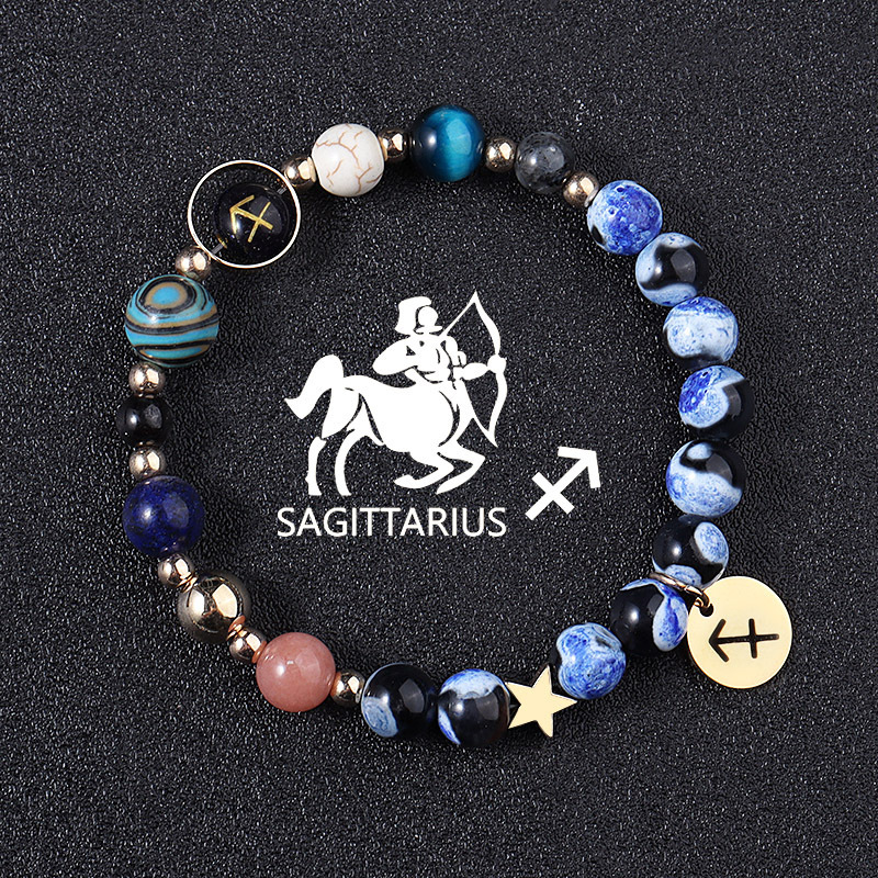 European And American Twelve Constellations Bracelets Blue Flame Agate Eight Planets Bracelet