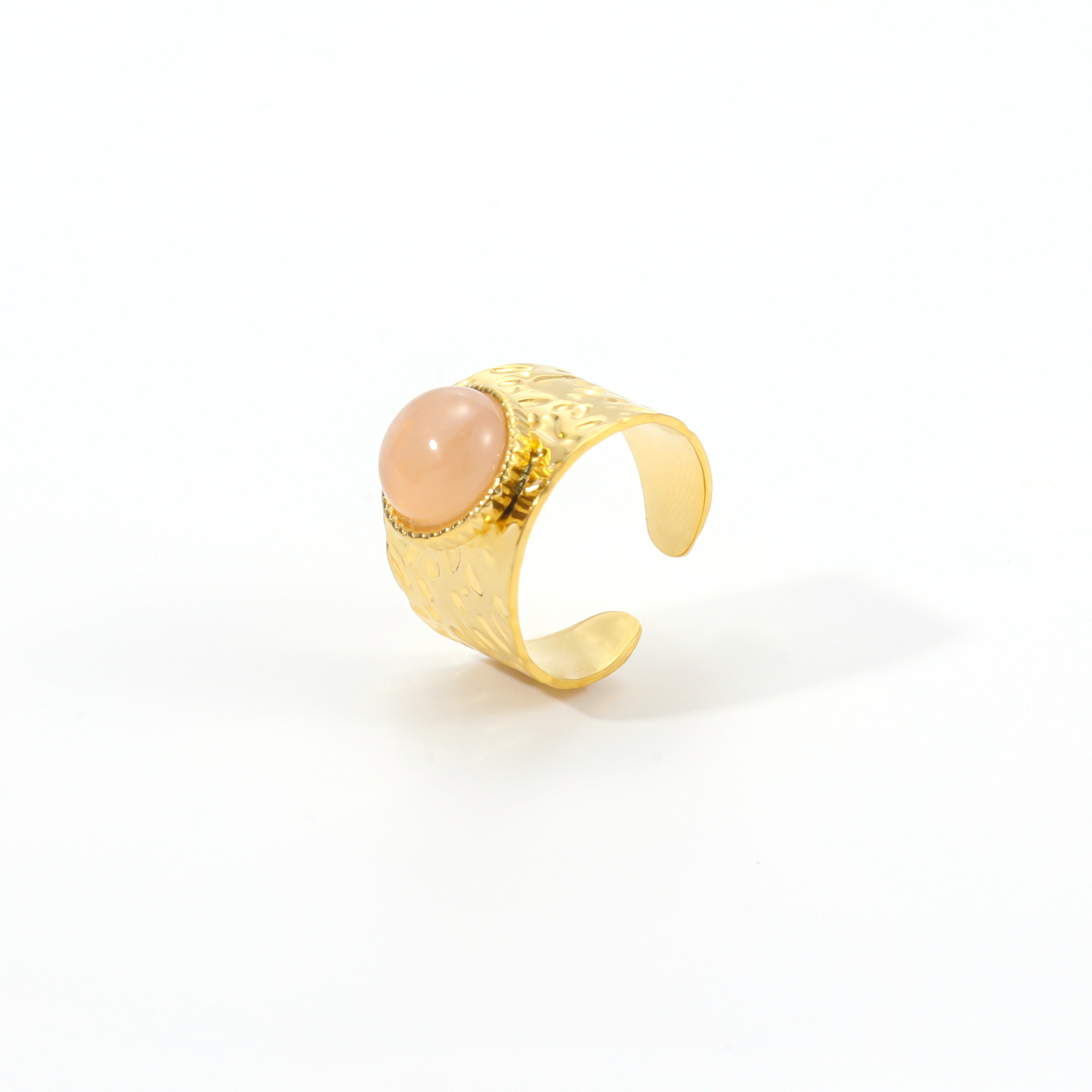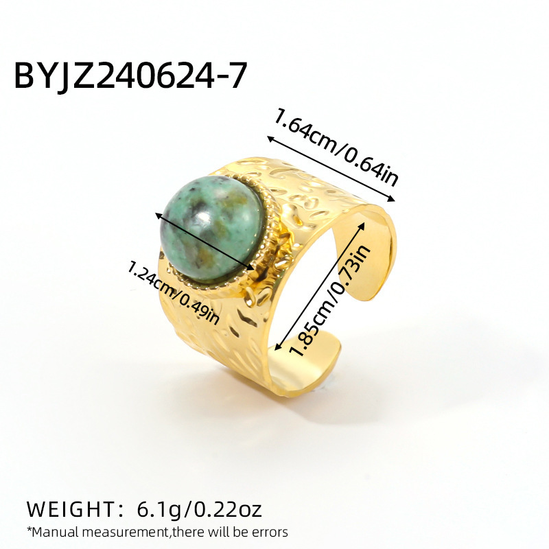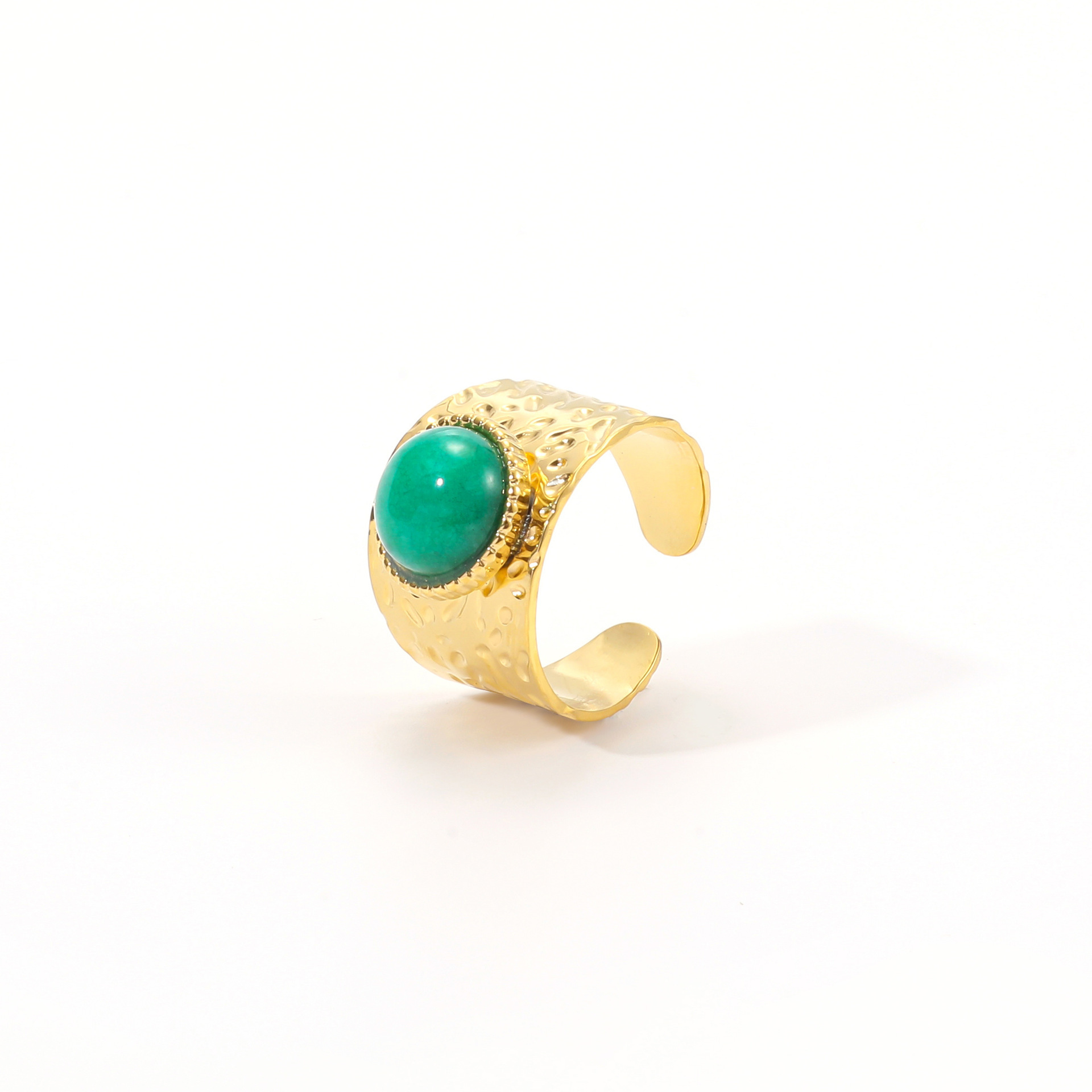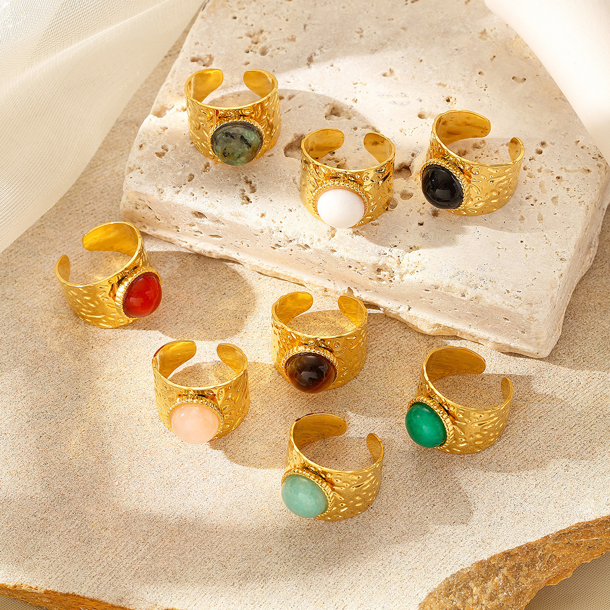 French-style Vintage Natural Stone Stainless Steel 18K Gold Ring