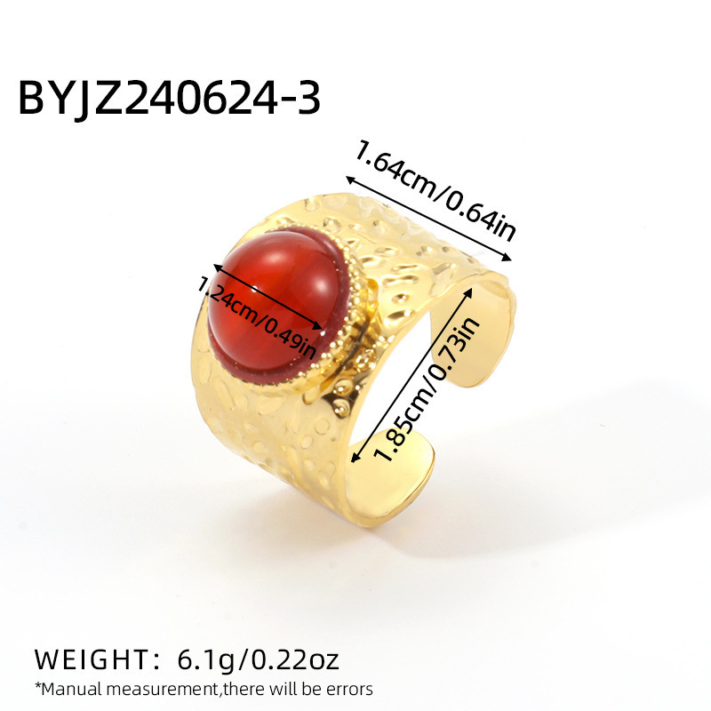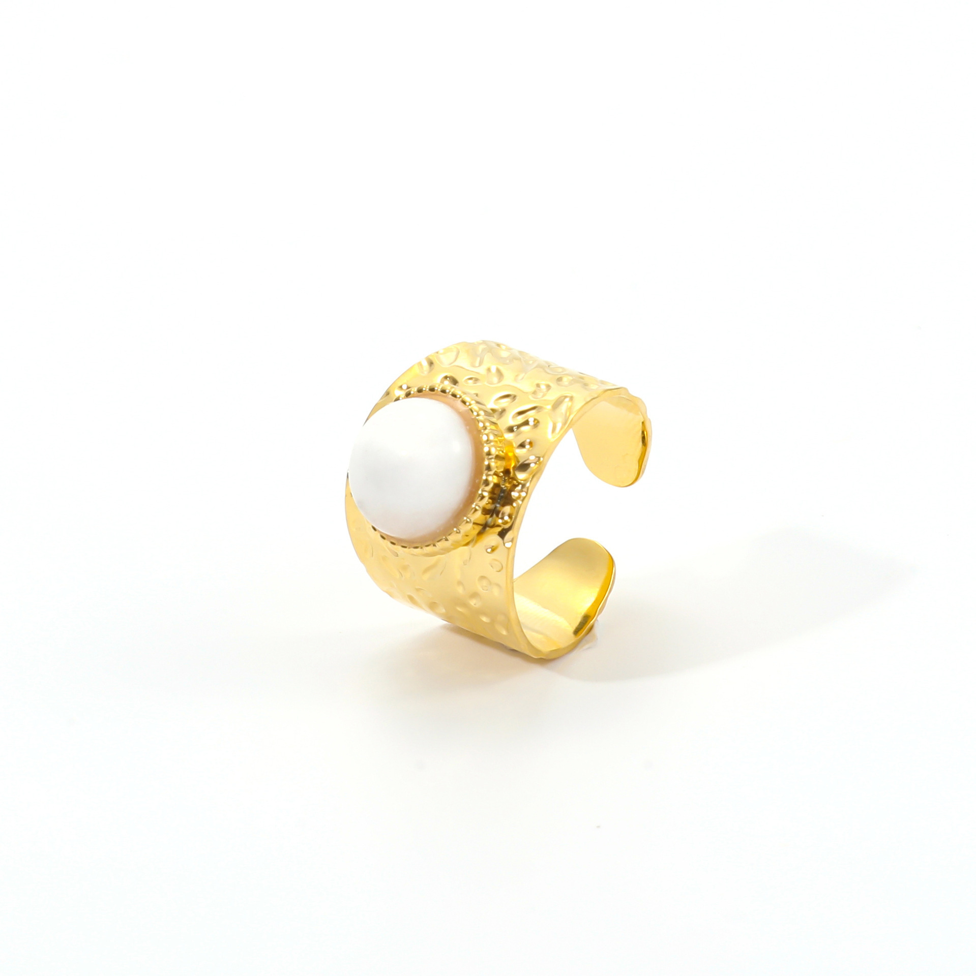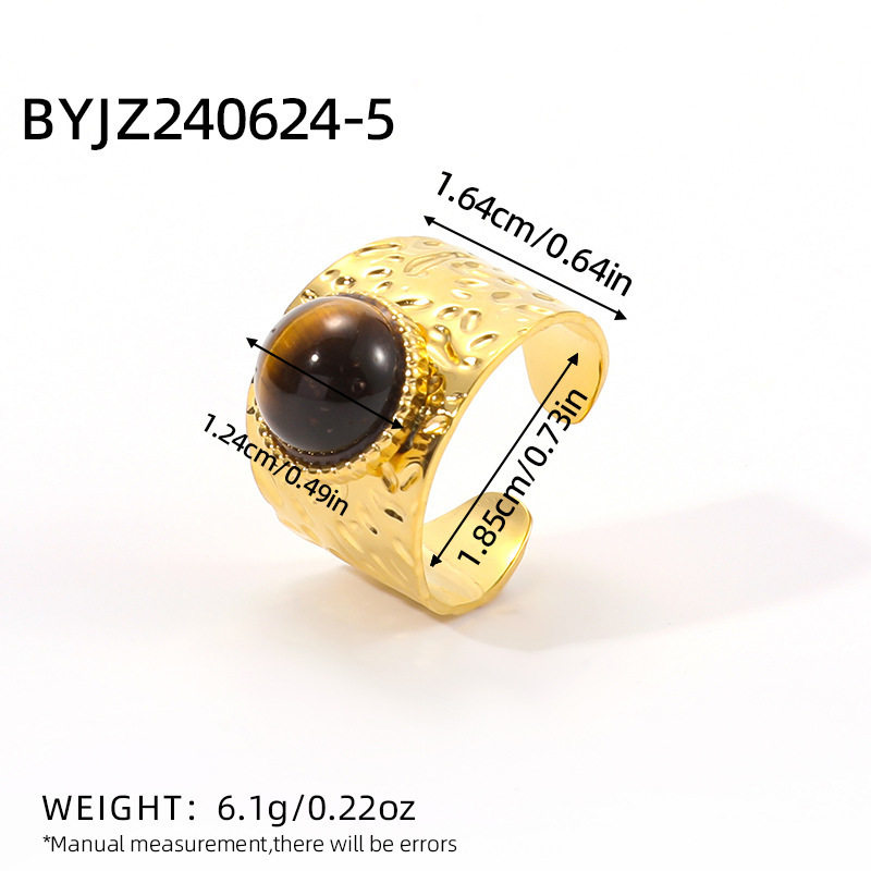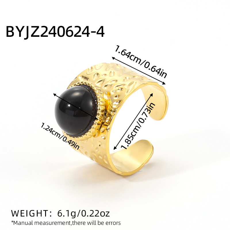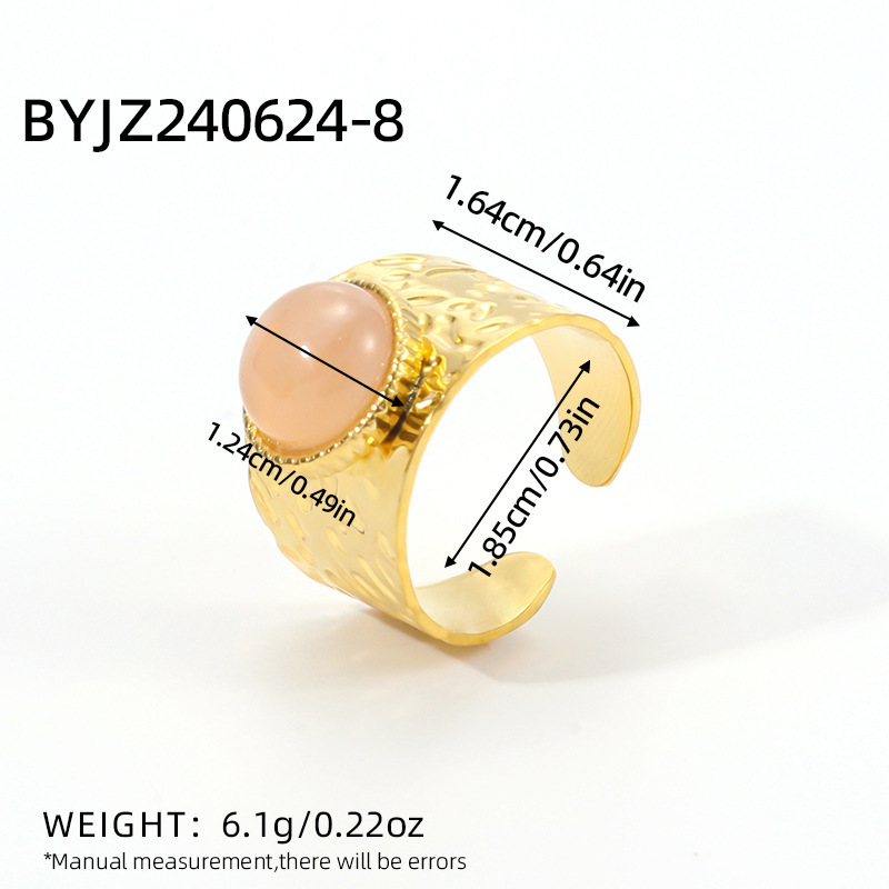 French-style Vintage Natural Stone Stainless Steel 18K Gold Ring