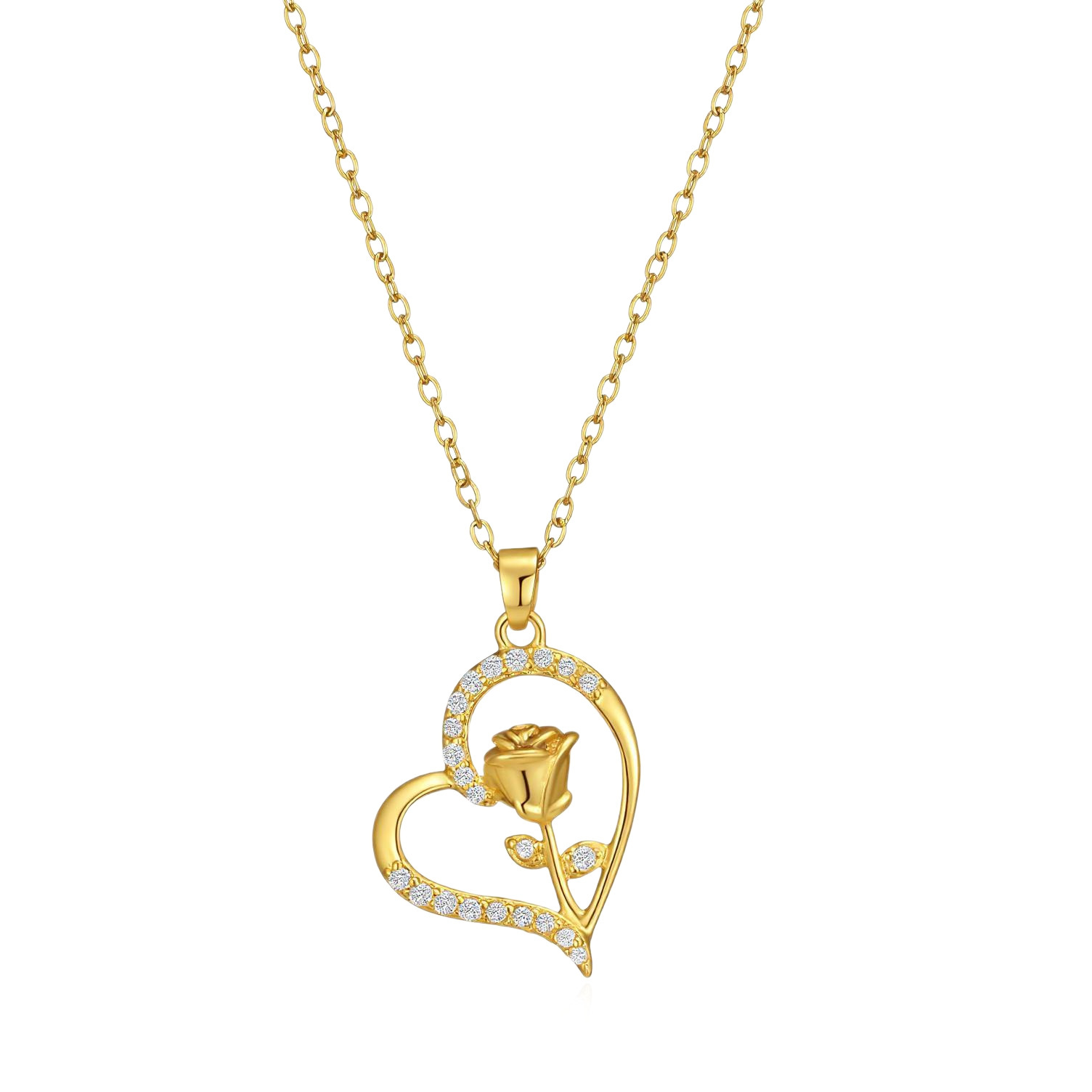 Heart Shaped Pendant Necklace For Women Diamond Encrusted Hollow Rose Clavicle Chain