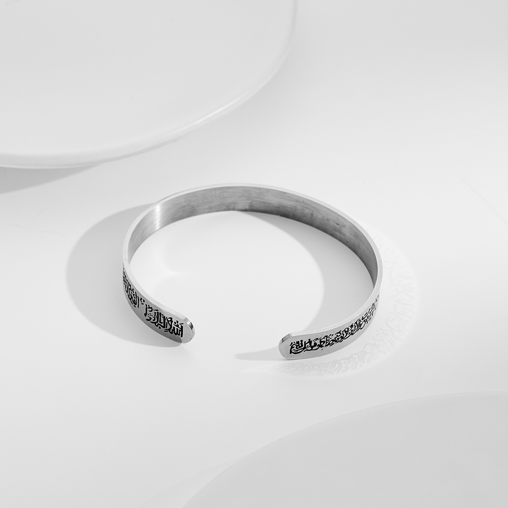 Muslim Allah Shahada Cuff Bracelet Engraved Islamic Scripture Koran Stainless Steel Bangle Islam Jewelry