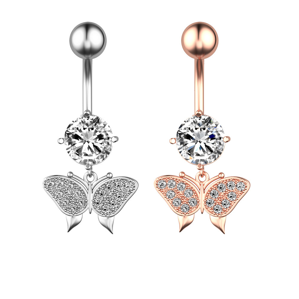 New Butterfly Zircon Belly Button Ring Belly Button Piercing Jewelry