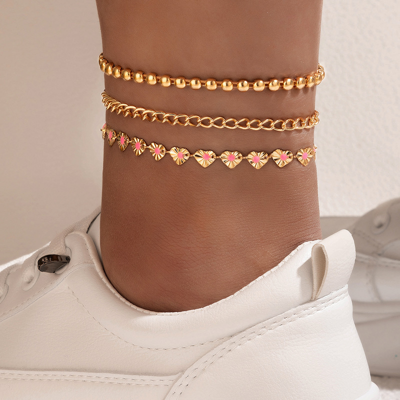 New Jewelry Alloy Double Layer Anklet Love Circle Piece Chain