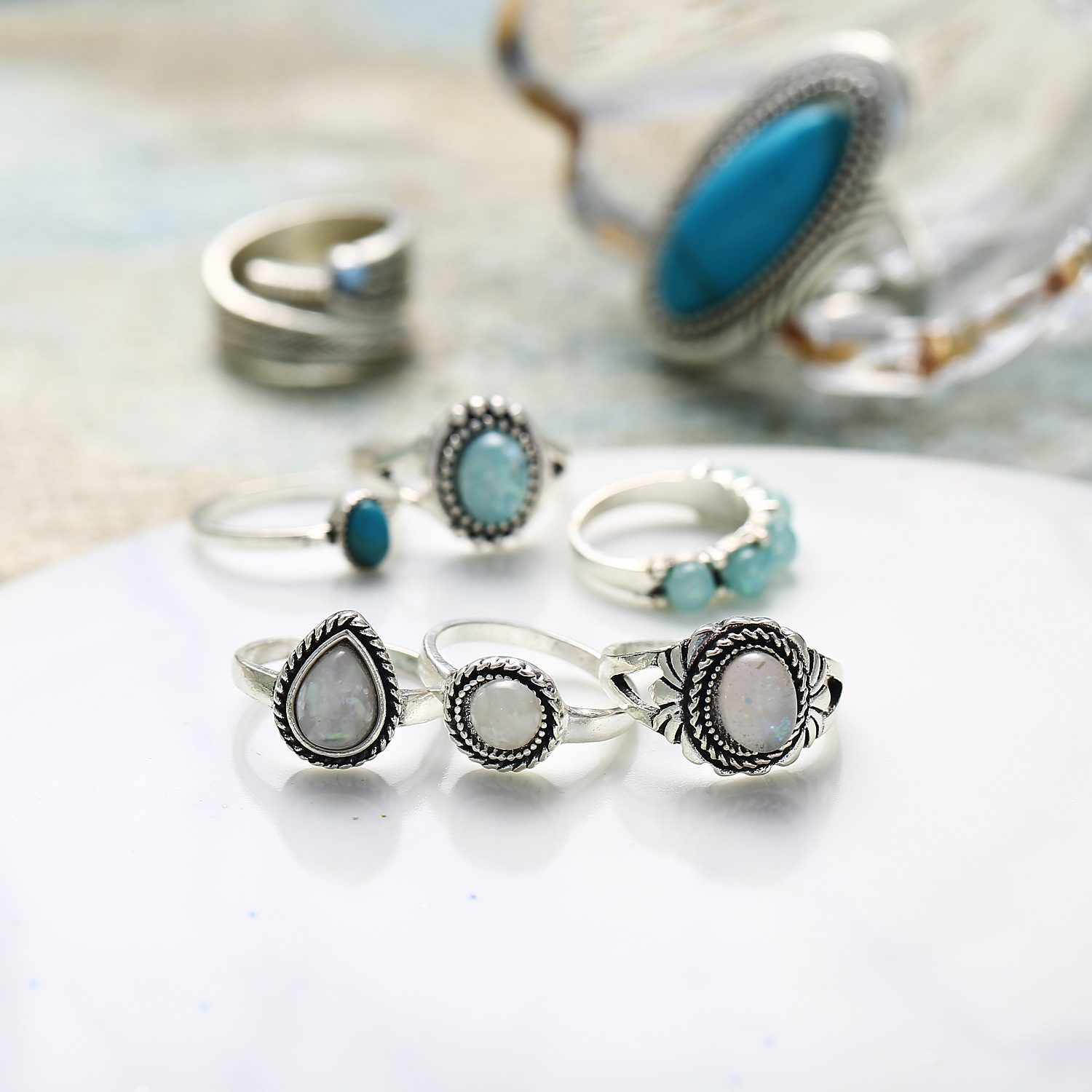 Be the first to review “Opal Ring Set Turquoise Eight Piece Jewelry”