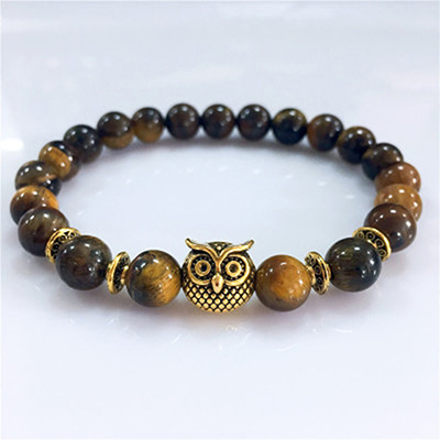 Owl Tiger’s Eye Volcanic Stone Energy Bracelet