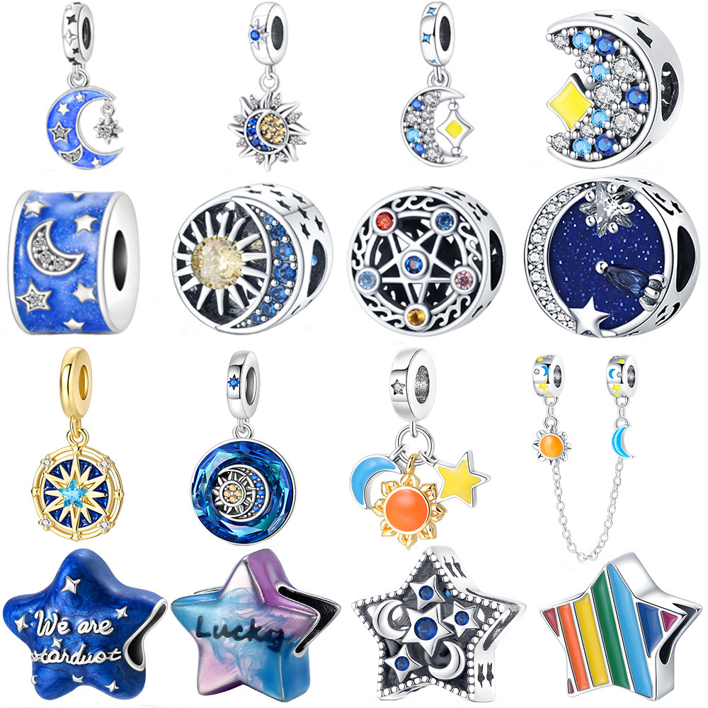 Sun Moon Star Silver Plated Copper DIY Bracelet Beads